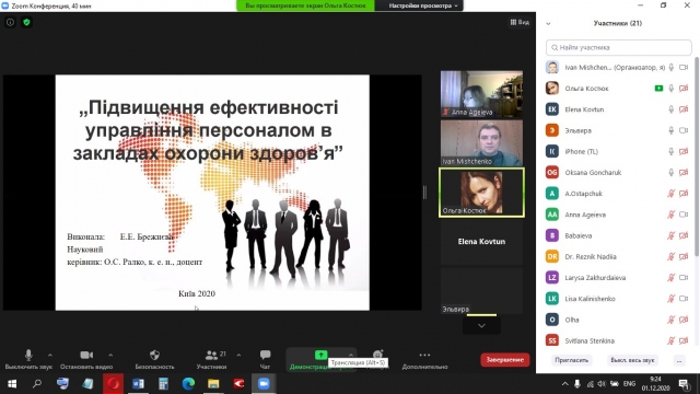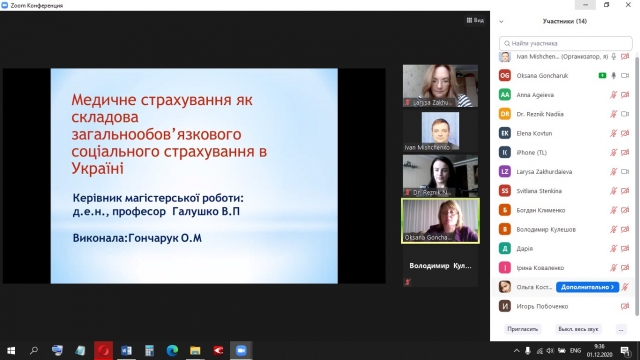 2 грудня 2020 року на кафедрі адміністративного менеджменту та зовнішньоекономічної діяльності продовжились захисти магістерських робіт магістрів спеціальності 073 «Менеджмент» освітньої програми «Адміністративний менеджмент» заочної форми навчання.