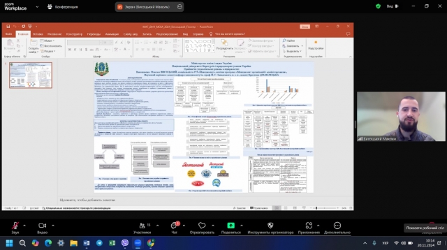 Відповідно до Положення про підготовку магістрів у Національному університеті біоресурсів і природокористування України, Положення про підготовку і захист кваліфікаційної магістерської роботи у НУБіП України, графіку освітнього процесу в університеті, вимог до організації підготовки і захисту магістерських кваліфікаційних робіт 20 листопада 2024 року на кафедрі менеджменту ім. проф. Й. С. Завадського була проведена постерна презентація результатів досліджень здобувачів другого (магістерського) рівня вищої освіти денної форми навчання спеціальності 073 «Менеджмент» освітньо-професійної програми «Менеджмент організацій і адміністрування». Даний захід став ефективною основою для обміну досвідом, отримання конструктивних відгуків та порад від науково-педагогічних працівників.