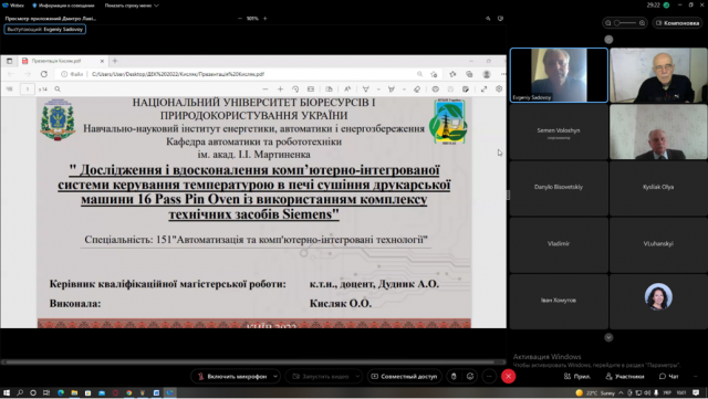 Для захисту магістерських робіт за спеціальністю 151 – «Автоматизація і комп’ютерно-інтегровані технології» згідно наказу ректора від 04 травня 2022 року №265 була створена екзаменаційна комісія у складі: Садовий Євген Анатолійович, генеральний директор «Дельта Вилмар», голова комісії; Лисенко Віталій Пилипович, д.т.н., професор, завідувач кафедри автоматики та робототехнічних систем ім. акад. І.І. Мартиненка; Шворов Сергій Андрійович, д.т.н., професор кафедри автоматики та робототехнічних систем ім. акад. І.І. Мартиненка; Наливайко Віталій Адамович, к.т.н., доцент кафедри електротехніки, електромеханіки та електротехнологій; Лавінський Дмитро Сергійович, асистент кафедри автоматики та робототехнічних систем ім. акад. І.І. Мартиненка, секретар комісії.
