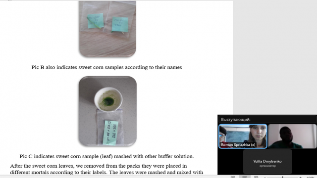 Вікторія проходила виробничу практику в ННЦ "Інститут землеробства НААН", де проводила дослідження гібридів кукурудзи селекції інституту. Ярослав проводив свою дослідження в ФГ "Криниченька" Хмельницької області, де порівнював за цінними господарськими ознаками сорти пшениці озимої іноземної селекції. Олівер основну увагу приділяв лабораторним дослідження в Всеукраїнському науковому інституті селекції (ВНІС). Зокрема це вивчення за ДНК маркерами генів su, se та sh кукурудзи цукрової. Результати проведеної роботи перевірялися в польових умовах.
