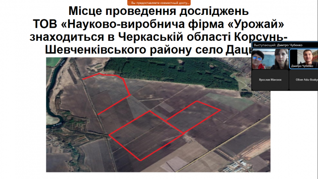 Дмитро Чубенко, дипломник професора кафедри Віталія Жемойди, проводив дослідження в ТОВ "Науково-виробнича фірма "Урожай"" в Черкаській області.