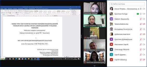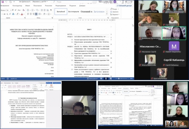 Завідувач кафедри менеджменту ім. проф. Й. С. Завадського професор Тетяна Балановська, члени комісії з прийому звітів по практиці – доценти кафедри Ольга Гогуля і Кристина Драмарецька, викладач кафедри – Володимир Восколупов заслухавши представлені звіти й оцінивши презентативний матеріал, задали уточнюючі запитання.