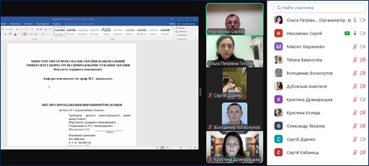 Відповідно до навчального плану підготовки здобувачів другого (магістерського) рівня вищої освіти та на виконання наказів «Про організацію практичного навчання студентів у першому семестрі 2024/2025 навчального року» від 10.07.2024 р. № 803, «Про направлення на виробничу практику» від 26.08.2024 р. № 1308 «С», у період з 26 серпня до 01 листопада 2024 р. здобувачі другого (магістерського) рівня вищої освіти спеціальності 073 Менеджмент за ОПП «Менеджмент організацій і адміністрування» другого року підготовки проходили виробничу практику з фаху. За результатами практичної підготовки студенти підготували звіти, які були оцінені та колективно обговорені під час захисту на кафедрі менеджменту ім. проф. Й. С. Завадського факультету аграрного менеджменту, що відбувся з дотриманням термінів, вказаних у наказі про направлення на виробничу практику.
