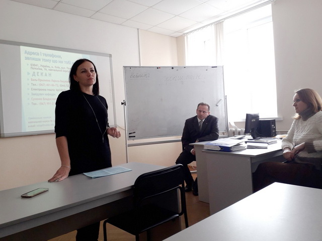 Профорієнтаційну роботу провели Владислав Сухенко доктор технічних наук, завідувач кафедри стандартизації та сертифікації сільськогосподарської продукції і Юлія Слива кандидат технічних наук, доцент цієї ж кафедри. Під час зустрічі викладачі мали можливість поспілкуватись зі студентами, які здобувають освітньо-кваліфікаційний рівень молодшого спеціаліста за спеціальністю «Товарознавство і комерційна діяльність».