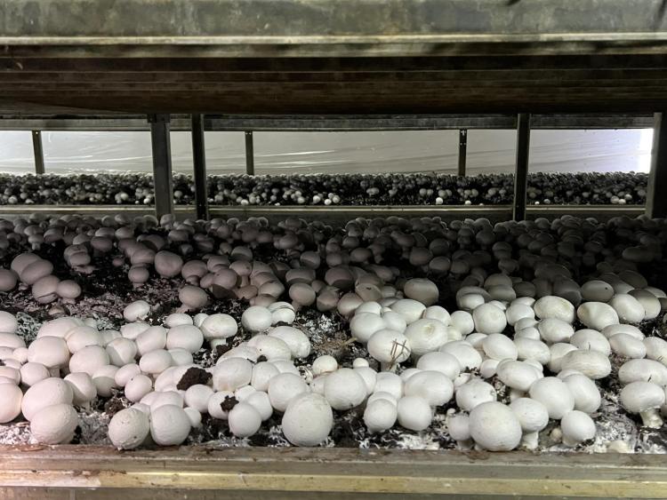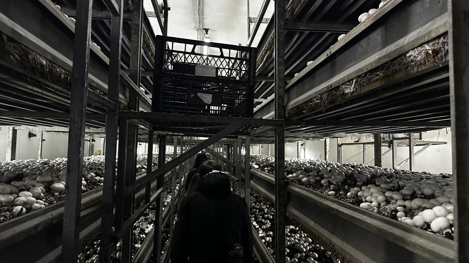 Ми побачили процес вирощування та збирання печериць (Agaricus bisporus). Нам розповіли про всі тонкощі цієї справи – від створення оптимальних умов до сортування і пакування готової продукції. Для вирощування грибів необхідне спеціальне приміщення з правильно облаштованими боксами, які працюють за принципом «термоса» – щоб підтримувати стабільну температуру. Також важлива система вентиляції, що видаляє вуглекислий газ і подає свіже повітря. Особливу увагу приділяють вологості (не менше 90%) та температурі (до 26 °C).