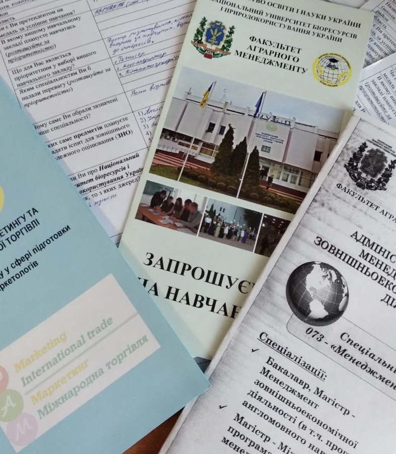 Під час обговорення інформаційних матеріалів Кузьменко С.В. та Гаврилюк В.П. ознайомили учнів із керівництвом та структурою НУБіП України, проінформували про спеціальності, які можна здобути на базі університету. Детально охарактеризували можливості вступу на факультет аграрного менеджменту, де здійснюється підготовка висококваліфікованих фахівців у галузі менеджменту та маркетингу.