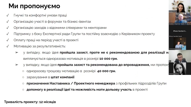 Роман Кантаровський, керівник розвитку проєктів зовнішнього інвестування, відповів на всі питання учасників щодо можливостей проєкту та описав алгоритм участі в проєкті.