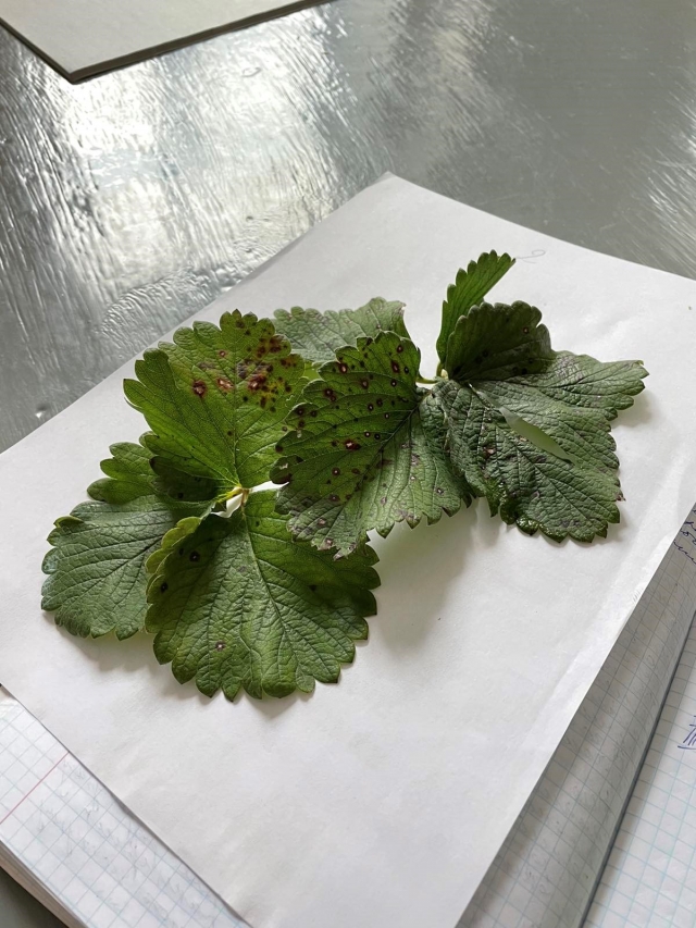 Аналізуючи листкові пластинки суниці, студентами встановлено пряму залежність розвитку хвороб від рівня їх опушеності . Чим більша кількість трихом на поверхні листків рослин суниці тим менший розвиток білої та бурої плямистості.
