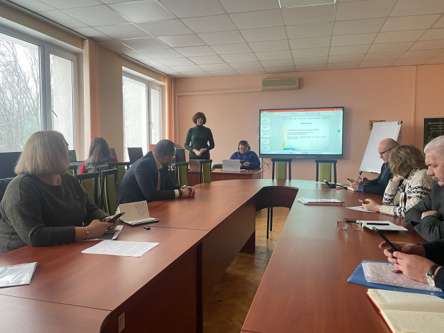 Керівники та виконавці НДР представили членам комісії та колегам наукові напрацювання, ознайомили з результатами роботи за 2023 р. та перспективами розвитку досліджень.