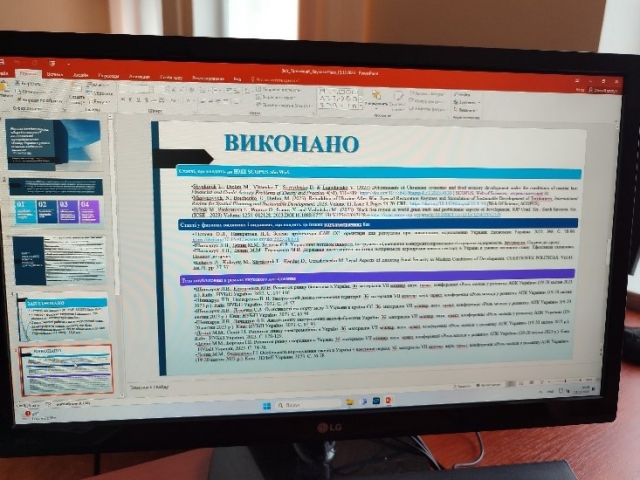 Про результати виконання ініціативної науково-дослідної теми «Розробка управлінського забезпечення розвитку зовнішньоекономічної діяльності агропродовольчого сектору України в умовах глобальних викликів» звітувала керівник теми к.е.н., доцент Тюріна А.А. Вона визначила, що проведений аналіз сучасних тенденцій реалізації принципів сталого розвитку в соціально-економічному житті України в цілому та аграрному секторі економіки, зокрема, дозволив виявити закономірності та проблеми впровадження цілей сталого розвитку бізнес формуваннями та їх вплив на соціально-економічний розвиток громад в яких вони функціонують.