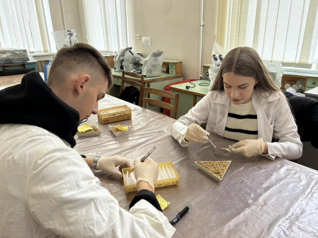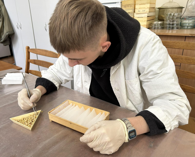 Здобувач першого (бакалаврського) рівня вищої освіти Тарас Пастух представив результати своєї наукової роботи щодо вивчення патологій насіння сої. Ним було зібрано зразки врожаю різних сортів для подальшої фітопатологічної експертизи. Під час роботи в лабораторії гуртківці також опанували практичні навички біологічного методу діагностики хвороб насіння.