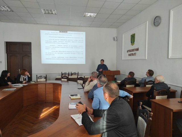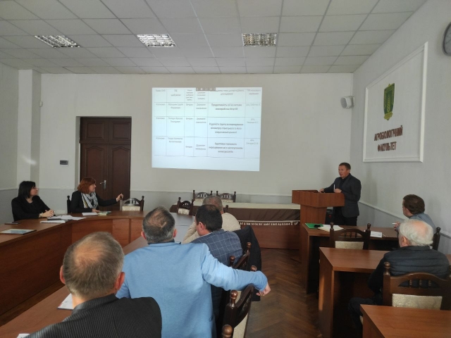 Розпочала засідання декан факультету Оксана Тонха з інформація про навчальні, наукові та інноваційні підходи за Європейського досвіду. Звернула увагу на актуальність регенеративного землеробства в європейських країнах. Обговорили необхідність підготовки проектів в цьому напрямку. Заступник декана Володимир Завгородній розповів про підготовку до державної атестації випускників ОС «Магістр» денної форми навчання спеціальностей «Агрономія», «Садівництво та виноградарство». Основну увагу звернув на проходження екзаменаційної сесії для магістрів, постерну конференцію. Нагадав, що навчальний рік для магістрів завершується 30 листопада, а для бакалаврів 9 грудня.