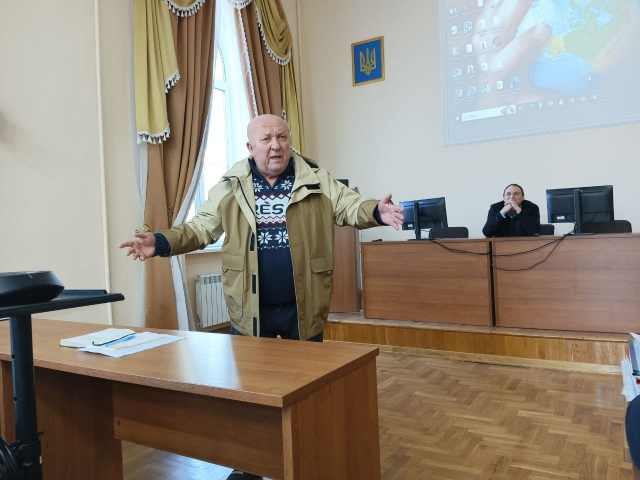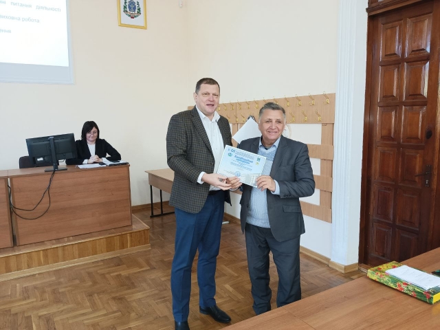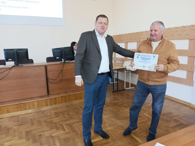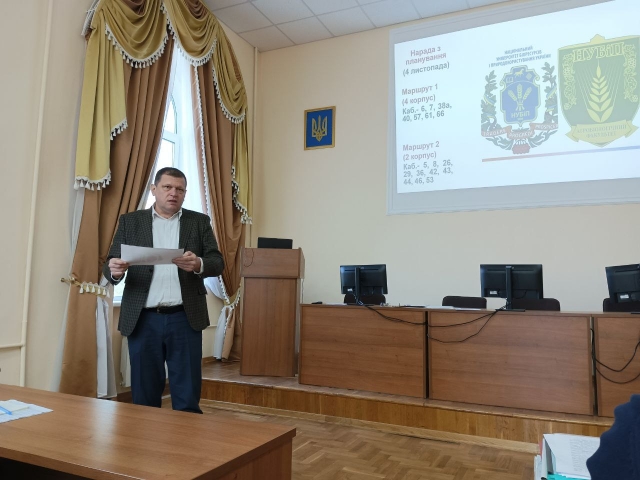 Декан факультету, професор Віталій Коваленко, розпочав зустріч із підведення підсумків роботи за жовтень та вручень відзнак за участь у Всеукраїнській ботанічній кваліфікаційній нараді за напрямком "Відновлення рослинності після війни: надії та ризики" професорам Віталію Жемойді та Віктору Забалуєву.