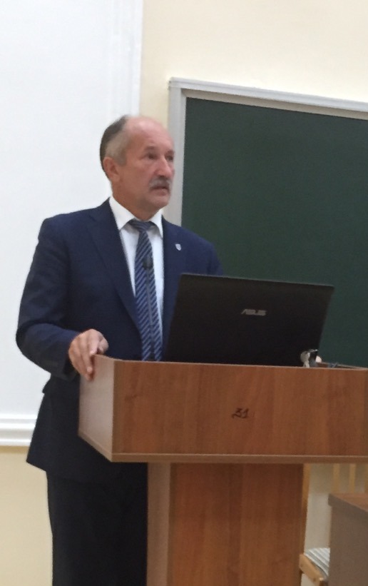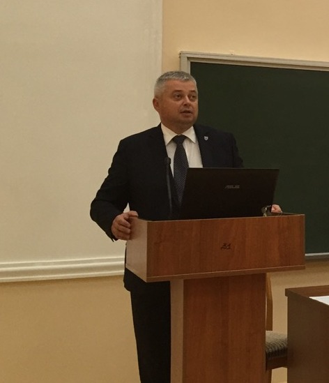 Наступним був виступ проректора з навчальної і виховної роботи Кваші Сергія Миколайовича. Він акцентував увагу на основних завданнях факультету, серед яких ключовими мають стати підвищення якості освітніх послуг, а саме, підвищення фаховості викладачів та використання сучасних засобів викладання.