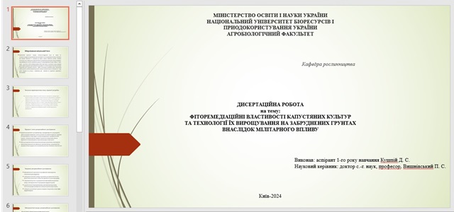 Аспіранти разом із керівниками готуватимуть роботи, спираючись на результати власних досліджень. Вони планують проводити ці дослідження як у польових умовах, так і в лабораторіях, використовуючи накопичені знання та навички, а також потужну матеріально-технічну базу кафедри рослинництва.