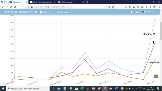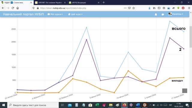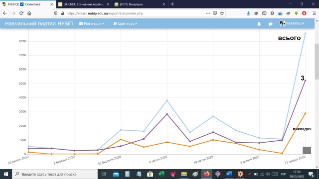 Завершився 15 (заключний) навчальний тиждень для студентів 3-х груп 1 курсу ОС «Магістр», які навчались за 3 різними робочими програмами на кафедрі акушерства, гінекології та біотехнології відтворення тварин. Перша група у кількості 21 студент вивчала репродукцію продуктивних тварин, а саме ВРХ, овець і кіз, з тижневим навантаженням 4 год.; друга (21 студент) - репродукцію дрібних домашніх і екзотичних тварин, з тижневим навантаженням 1 год.; третя (25 студентів) - репродукцію собак і котів, з тижневим навантаженням 3 год. Всі студенти навчались із використанням ЕНК відповідних дисциплін. Порівняльний аналіз їх активності (рис.1-3, 1,2,3) свідчить, що до оголошення в країні карантину діяльність слухачів курсів була невисокою, а після – зросла в десятки разів.