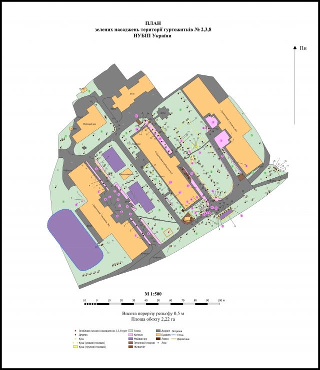 У поточному році також було уточнено низку таксаційних показників, які збиралися під час польових робіт, а за допомогою геоінформаційної системи Quantum GIS нанесено на підготовлені топографічні карти внутрішню ситуацію зелених насаджень на території університету.