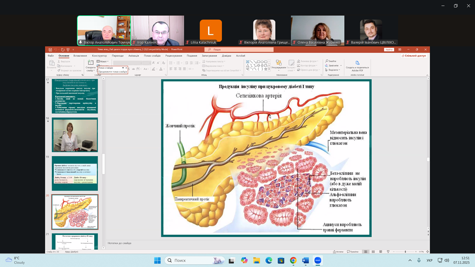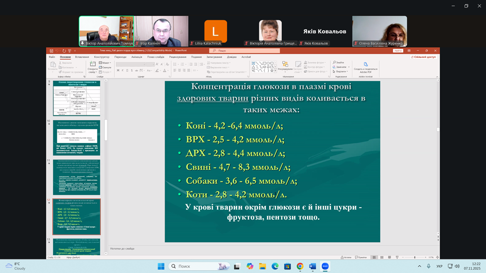 Завідувач кафедри, доктор ветеринарних наук, професор Віктор Томчук прочитав лекцію згідно робочої програми дисципліни на актуальну тему «Лабораторна діагностика порушень обміну вуглеводів в організмі тварин». Захід був проведений у дистанційному форматі на платформі Zoom, забезпечивши доступність та інтерактивність для всіх учасників.