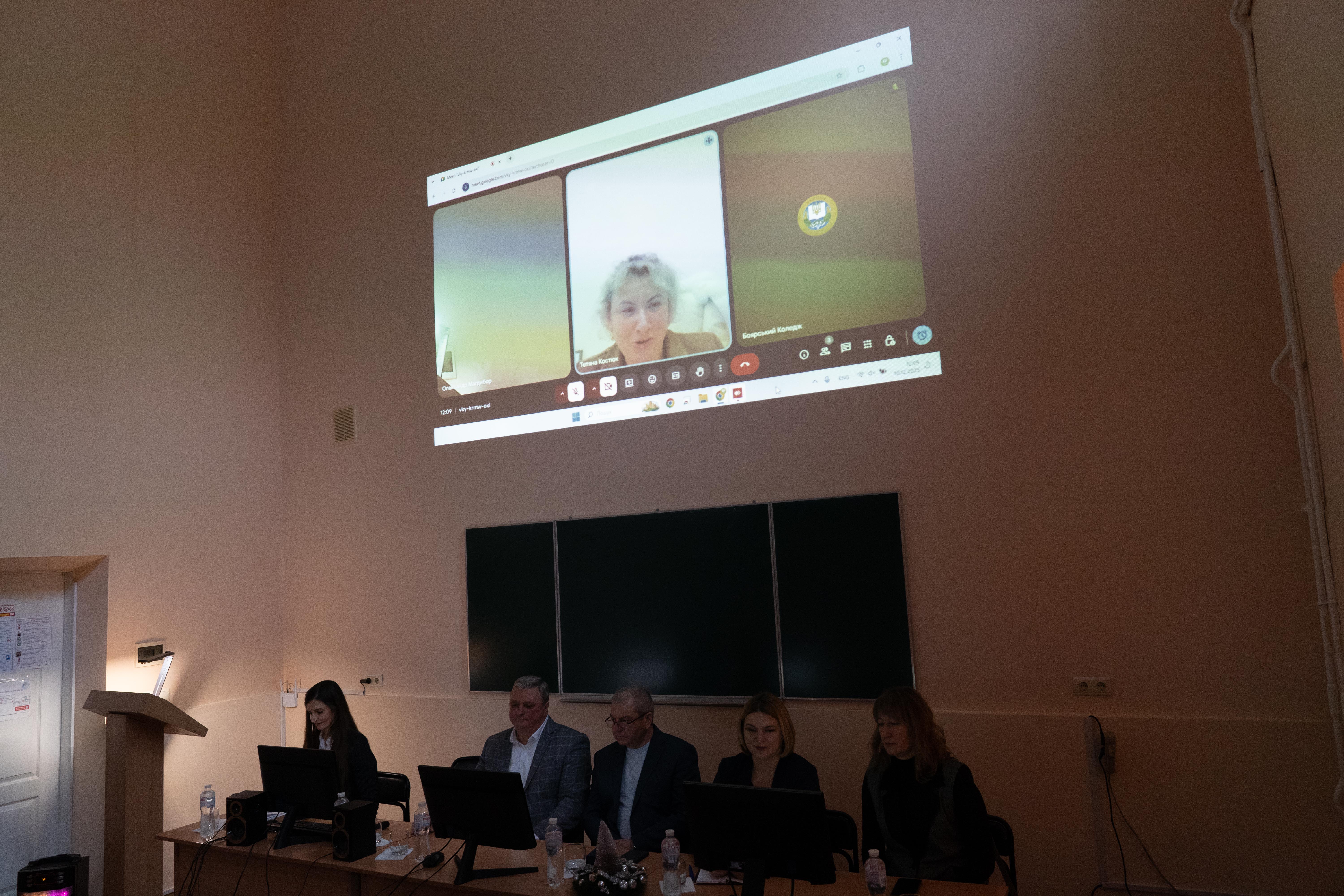 В оговорені взяли участь представники структурних підрозділів, циклових комісій та студентства, які відзначили успіхи коледжу, результати співпраці з університетськими кафедрами та роботодавцями. Проректор з науково-педагогічної роботи та економічних питань НУБіП України Тетяна КОСТЮК наголосила на важливості співпраці та підкреслила, що сучасні виклики вимагають консолідації зусиль усіх структурних підрозділів, інтеграції професійного досвіду та відкритості до взаємодії. Голова наглядової ради Юлія КОЛОМІЄЦЬ та голова ради роботодавців Сергій ІРКЛІЄНКО позитивно оцінили динаміку розвитку та рівень підготовки здобувачів освіти. З її слів, саме злагоджена робота колективу є основою ефективного прийняття управлінських рішень, забезпечення якості освіти та сталого розвитку коледжу.