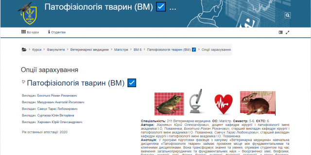 Слід відмітити, що здобувачі вищої освіти використовували електронний навчальний курс дисципліни «Патофізіологія тварин», який розміщений на платформі Elearn (https://elearn.nubip.edu.ua/course/view.php?id=1777).