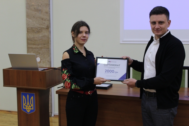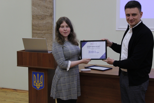І місце: Марценюк Сергій, тема наукової роботи «Розробка нових вакцин проти африканської чуми свиней: аналіз перспектив і складнощів розробки ефективної вакцини проти вірусу АЧС» – сертифікат на стипендію 5 000 грн./місяць;