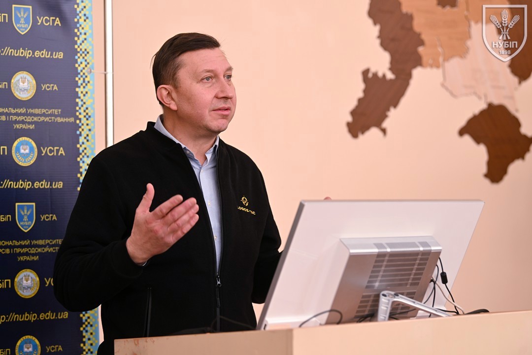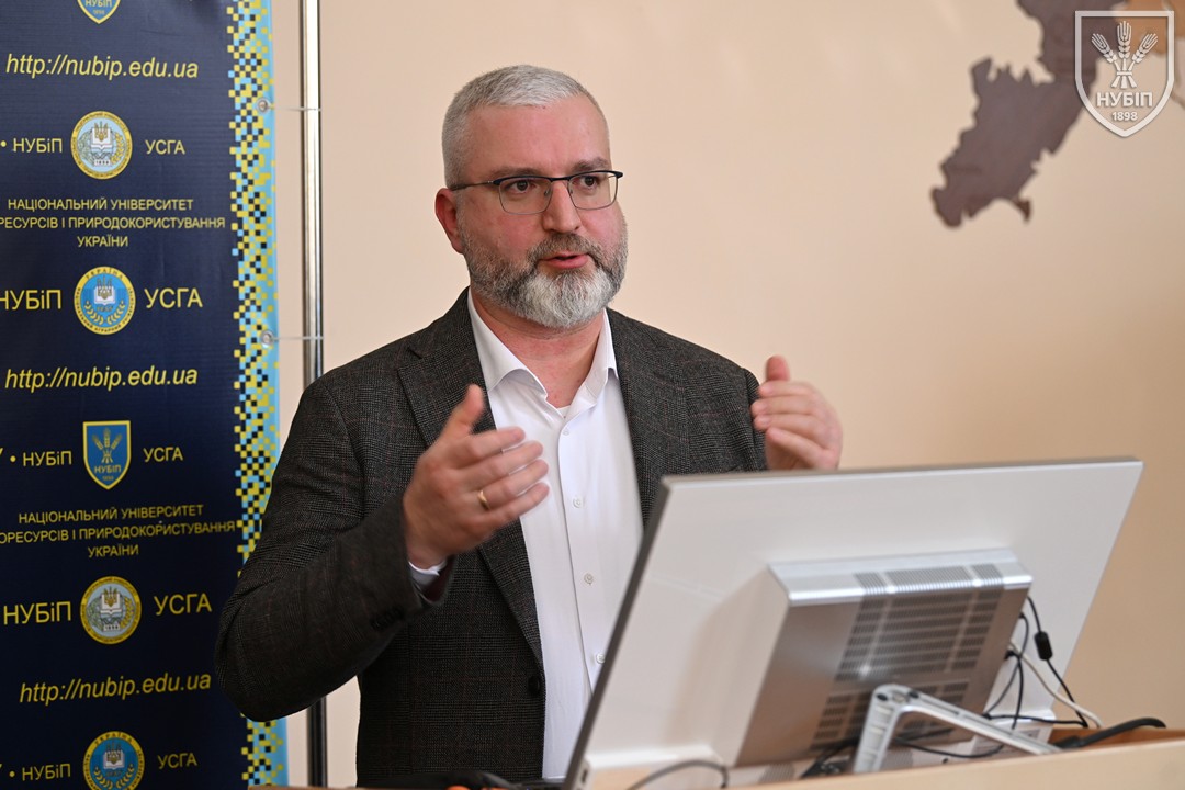 Завідувач кафедри землевпорядного проектування НУБіП України Андрій МАРТИН у доповіді «Землеустрій у часи змін: ключові реформи, цифровізація та шлях до ЄС» окреслив стратегічні драйвери трансформації галузі. Йшлося про повне наближення земельної сфери до практик Європейського Союзу, цифрову реформу геоданих і реєстрів як критичної інфраструктури, нові підходи до доступу до землі в межах антикорупційної політики. Окрему увагу доповідач приділив питанням інтероперабельності реєстрів, розвитку електронної документації із землеустрою, переходу до API-логіки публічних сервісів, прозорих механізмів обліку обмежень у використанні земель, масової оцінки, а також європейським вимогам до відкритості геоданих, екологічної оцінки та просторового планування. Фактично йшлося про зміну самої професійної ролі інженера-землевпорядника: від виконавця документації — до фахівця, який забезпечує якість даних, юридичну відтворюваність результату та довіру до просторових рішень.