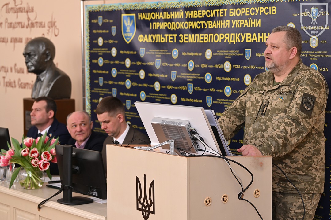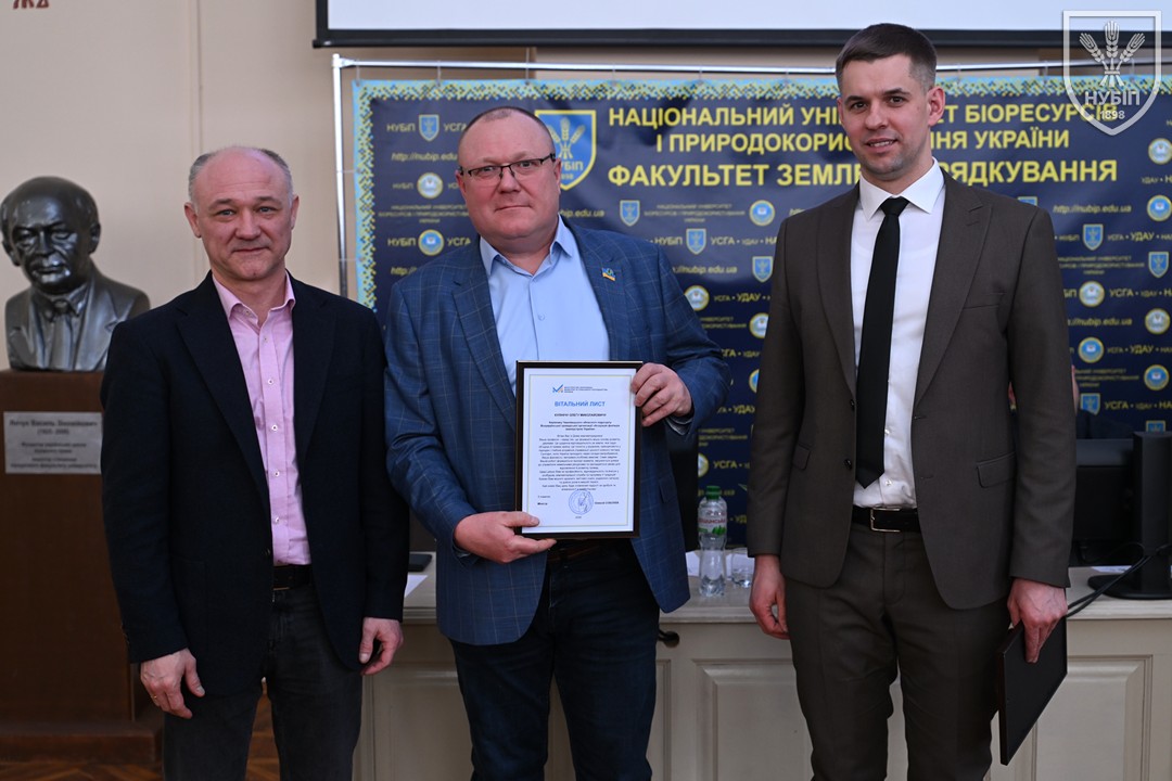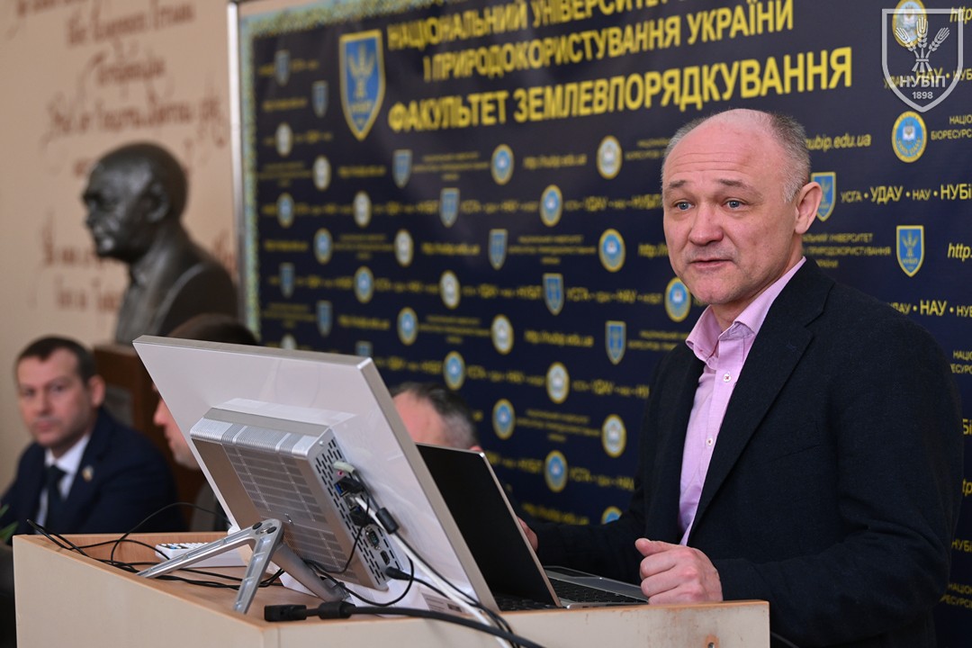З вітальними словами до учасників також звернулися начальник науково-дослідної частини НУБіП України Володимир ОТЧЕНАШКО, заступник Голови Державної служби України з питань геодезії, картографії та кадастру Ігор КИРИЛЮК, голова правління ВГО «Асоціація фахівців землеустрою України» Анатолій ПОЛТАВЕЦЬ, голова ГО «Асоціація сертифікованих геодезистів України» Павло МАТВЄЄВ, офіцер інженерної служби відділу озброєння та інженерно-технічного забезпечення ВЧ 2193 ДПСУ, капітан Олександр КОРОЛЮК, ветеран галузі, заступник голови ВГО «Спілка землевпорядників України» Юрій КУЛАКОВСЬКИЙ. Така широка присутність представників університетської спільноти, державних інституцій, професійних асоціацій, практиків і військових ще раз засвідчила: земельні питання в сучасній Україні перебувають на перетині науки, управління, технологій і національної безпеки.