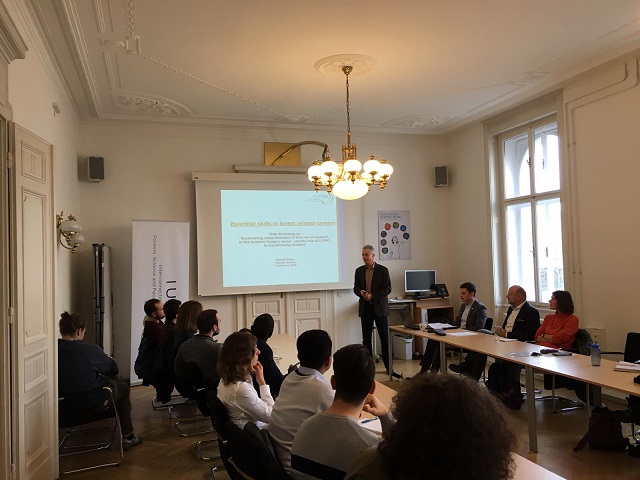 Перед студентами виступили досвідчені науковці університету BOKU та IUFRO. Так, виконавчий директор IUFRO Олександр Бак доповів про місію, цілі і завдання, структуру організації, проекти та поточні активності. Старший науковий співробітник Університету природних ресурсів та наук про життя (Відень) Доктор Елізабет Петцельсбергер розповіла про багату, мультинаціональну культуру та історію університету BOKU, важливу роль координації наукових досліджень завдяки IUFRO та заходів, до яких залучаються місцеві осередки IFSA. Заступник виконавчого директора IUFRO Доктор Міхаель Кляйн розповів про важливість формування лісової політики в умовах глобальних викликів, розкрив зміст окремих проектів та ініціатив таких як: Спеціалізована Програма для Розвитку Потужностей (IUFRO-SPDF), Всесвітня Лісова Інформаційна Служба (GFIS).