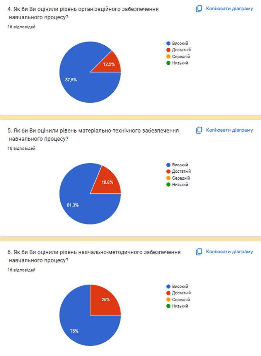 З метою оцінювання ефективності та якості освітнього процесу з підвищення кваліфікації було проведено анонімне анкетування слухачів, яке дало змогу отримати об’єктивний та змістовний зворотний зв’язок щодо організації занять, актуальності навчальних тем і роботи викладацького складу