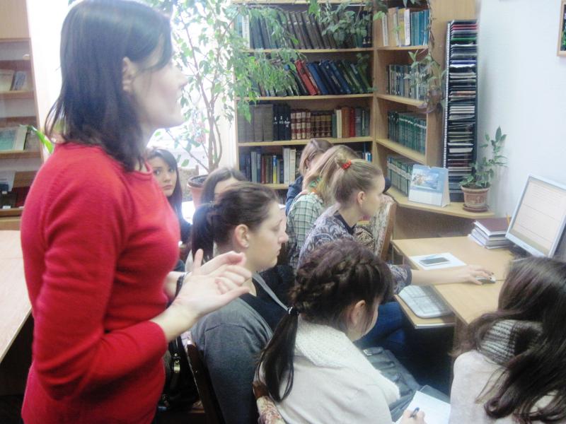 Працівники бібліотеки розкрили гуртківцям принципи ефективного використання ресурсів та акцентували увагу на електронну бібліотеку,що містить повні тексти наступний видань: