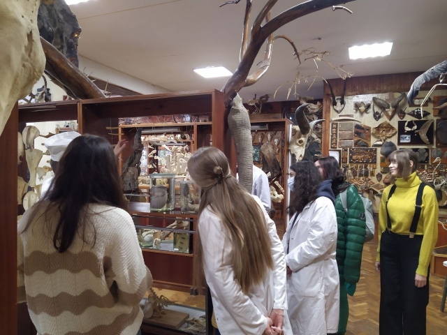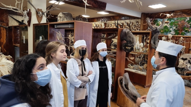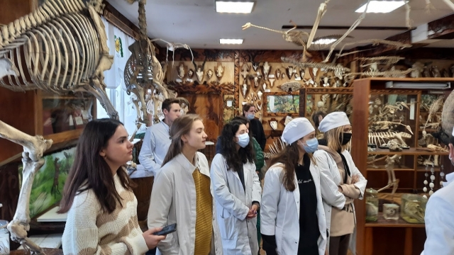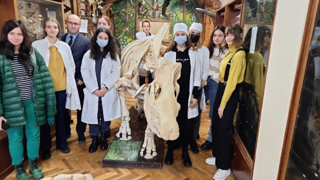 Студенти 8 групи 1 курсу факультету ветеринарної медицини разом із куратором доктором ветеринарних наук, доцентом Павлом Васильовичем Шарандаком відвідали музей Національного університету біоресурсів та природокористування України під керівництвом доцента кафедри анатомії, гістології і патоморфології тварин ім. акад. В.Г. Касьяненка Миколи Михайловича Стегнея. Останній познайомив відвідувачів музею з основними експозиціями, особливо скелетами та кістками диких рідкісних тварин. Більшість студентів відвідували й інші музеї присвячені тваринному світу, але експонати музею факультету ветеринарної медицини НУБіП України вразили своєю екстраординарністю та викликали справжній інтерес у молодого покоління. Студенти виявили бажання повернутися до відвідин музею анатомії.