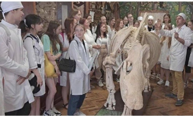 Студенти 1 курсу 6 групи факультету ветеринарної медицини НУБіП України нещодавно мали захоплюючу екскурсію до музею анатомії при своєму факультеті. Цей музей, який є однією з головних навчальних баз для студентів-ветеринарів, вражає своєю багатою колекцією експонатів, що детально ілюструють будову тіла різних тварин. Захід розпочався зі знайомства з історією музею та його унікальною колекцією. Студентів привітав екскурсовод, який розповів, що музей був заснований багато років тому з метою допомогти студентам у вивченні анатомії різних видів тварин. В експозиції представлені скелети, внутрішні органи, а також інші цікаві зразки, які дозволяють краще зрозуміти фізіологію тваринного світу. Під час екскурсії студенти уважно слухали екскурсовода, а також задавали багато запитань. Особливо зацікавили студентів експонати великих тварин, таких як коні та корови, а також унікальні зразки, як-от легені диких тварин та черепи різних видів птахів. Екскурсія стала для них чудовою нагодою побачити на власні очі те, про що вони читають у підручниках, і з перших хвилин зануритися у світ анатомії. Завдяки екскурсії студенти не лише здобули нові знання, а й відчули натхнення до подальшого навчання та поглибленого вивчення ветеринарної медицини. Повернувшись з музею, вони обговорювали побачене та ділилися враженнями, з нетерпінням очікуючи нових практичних занять та можливості застосувати отримані знання на практиці.Куратор 1 курсу 6 групи М. Маринюк