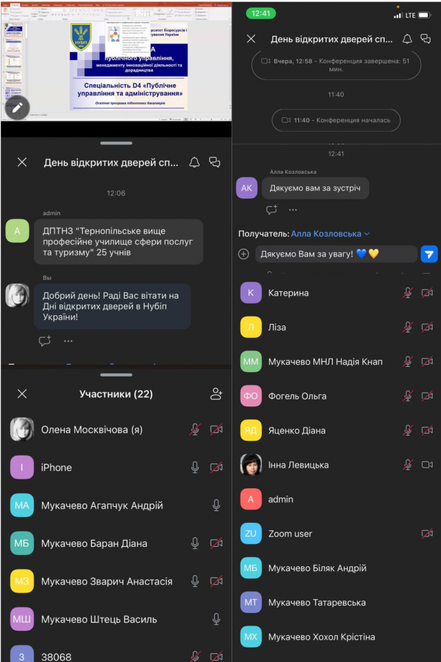 16 квітня День відкритих дверей продовжився — до університету приїхали студенти коледжів, технікумів та закладів фахової передвищої освіти. Формат події був змішаним: частина гостей була присутня безпосередньо в 10 навчальному корпусі, де розташовується кафедра публічного управління, менеджменту інноваційної діяльності та дорадництва, а ще більше – підключились дистанційно із різних куточків України. До заходу долучились освітні заклади Київщини, Вінниччини, Тернополя, Рівного, Закарпаття.