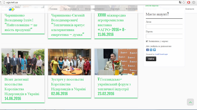 У співпраці кафедри автоматики та робототехнічних систем ім. акад. І.І. Мартиненка і Асоціації «Теплиці України» досягнуто чергового результату. За підтримки посольства Нідерландів в Україні, членів Асоціації «Теплиці України» допомогою, групою розробників кафедри, зокрема аспірантом кафедри Богданом Куляком, студентами факультету інформаційних технологій Богданом Настенком і Анатолієм Мельником розроблено сайт Асоціації «Теплиці України» www.uga.net.ua. І з 1 серпня поточного року, після узгодження всіх організаційних заходів, він запрацював. В тому числі почала працювати і соціальні мережі, зокрема Facebook, "Вконтакті" та "Однокласники".