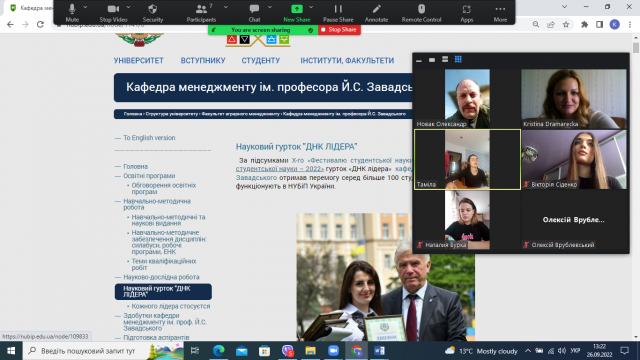 Професором кафедри менеджменту ім. проф. Й. С. Завадського Надією Резнік для здобувачів вищої освіти, в тому числі членів студентського наукового гуртка«ДНК Лідера», була організована онлайн-зустріч з Ярославом Соймою – митним брокером ТОВ «Укртрансагент», який виступив з темою: «Митна логістика».