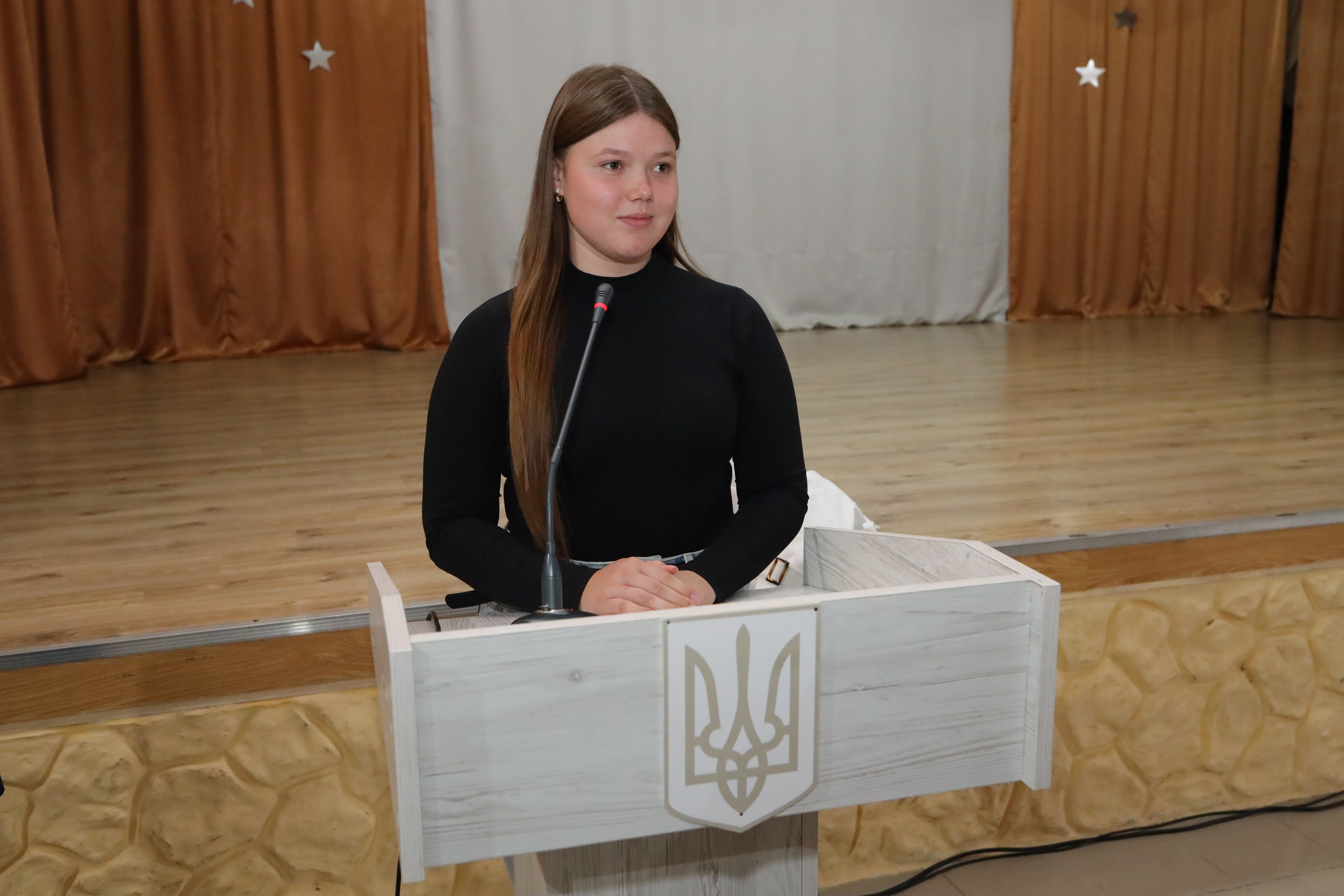 Заступник директора з виховної роботи Вікторія ПОПОВИЧ привітала гостей зібрання і коротко ознайомила їх із особливостями виховної роботи в коледжі як невід’ємної складової освітньої діяльності. Вікторія Іванівна відмітила, що результатом наполегливої спільної роботи викладачів і здобувачів освіти є високі показники як у навчанні, так і в спортивно-масовій роботі.