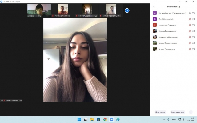 Кристина Павлівна поцікавилась здоров’ям студентів та нагадала про важливості дотримання основних заходів безпеки життєдіяльності в режимі карантинних обмежень. Актуальними питаннями в обговоренні були продовження занять у дистанційному режимі, поточний стан успішності здобувачів вищої освіти, відвідування занять і результати проміжної атестації кожного студента.