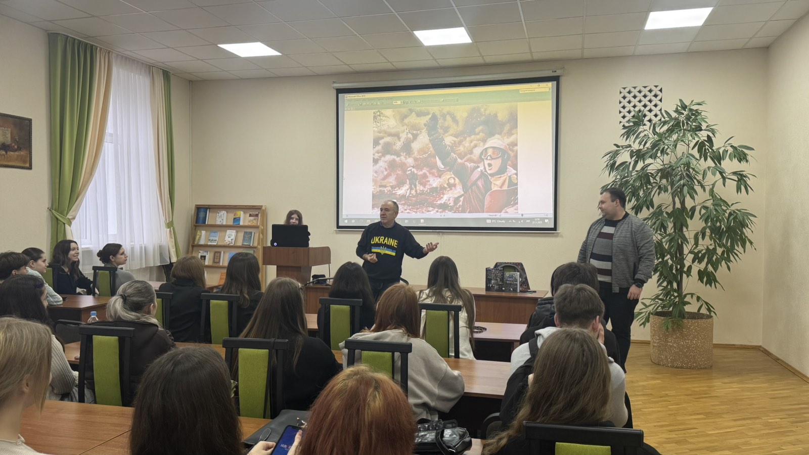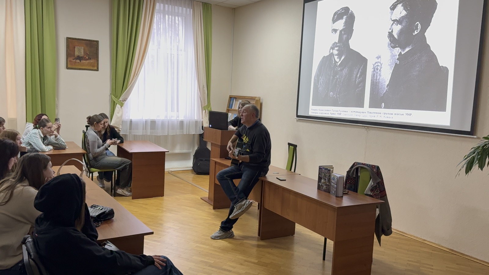 Після цього наш гість задав аудиторії таке питання: «хто знає, що таке УПА?» Спочатку у залі була тиша, а потім студенти самі захотіли розмовляти та дискутувати на різні теми. Ми разом згадували другий зимовий похід Армії УНР, битви УПА, студентську революцію на граніті, підпільну діяльність, «Холодний яр», Революцію Гідности… Це ті події, про які не можна мовчати, особливо у наш час. І не могли пройти повз тих героїв, завдяки яким ми маємо змогу жити у нашій державі. Григорій ЧИЖЕВСЬКИЙ, Петро БОЛБОЧАН, Юрій ГОРЛІС-ГОРСЬКИЙ (Городянин-Лісовський), брати Дмитро, Олексій, Василь СОКОЛОВСЬКІ та їхня 16-річна сестра Олександра (отаманна Маруся) — це герої, які не забуті, вони приклад героїзму, патріотизму та витримки.