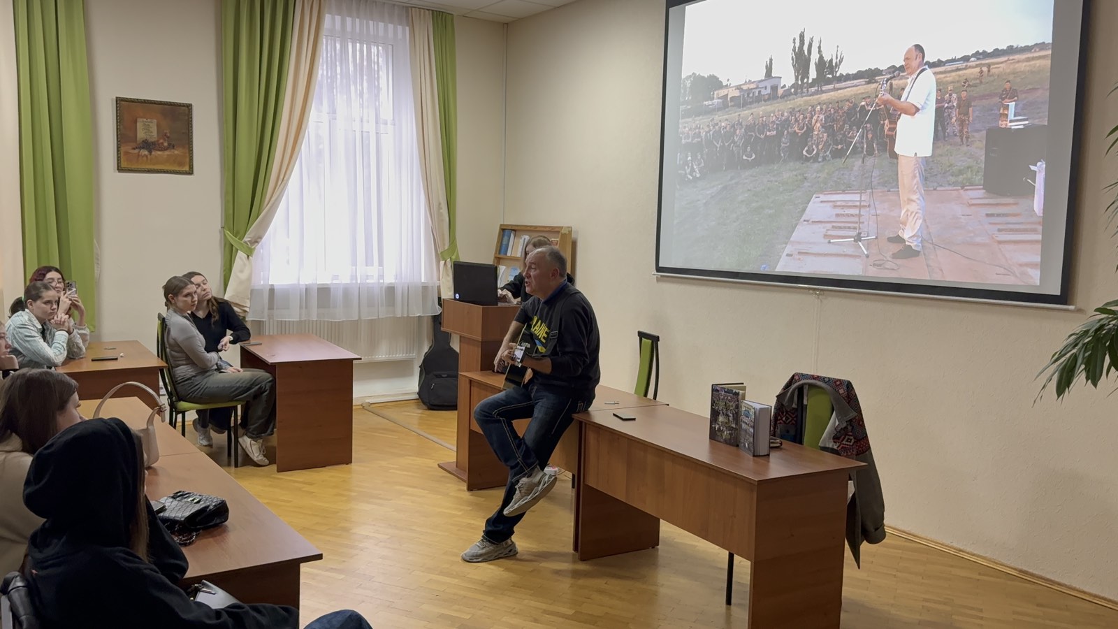 27 листопада студентам гуманітарно-педагогічного факультету дуже пощастило зустрітись із Володимиром Васильовичем ГОНСЬКИМ, людиною з великої літери. Український громадсько-політичний діяч, науковець, публіцист, бард, ведучий найбільших патріотичних протестних акцій, зокрема Мовного майдану, Євромайдану, артволонтер, заслужений діяч мистецтв України — це все про нашого гостя.