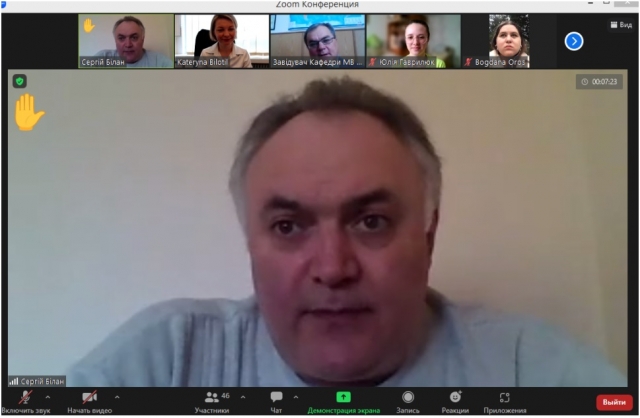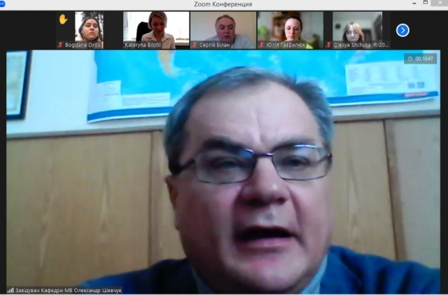 Доктор історичних наук, професор кафедри міжнародних відносин і суспільних наук, Білан Сергій Олексійович також поцікавився, як реагує уряд Бельгії на погрози російського уряду, які постійно йдуть у сторону центрів прийняття рішень? «Наскільки я розуміюсь у цьому питанні, то уряд реагує, але нажаль не так швидко, як хотілось би Україні». Завідувач кафедри міжнародних відносин і суспільних наук Шевчук Олександр Володимирович поцікавився, як у Бельгійських ЗМІ висвічують війну в Україні, після чого, пані Катерина розповіла: «Досить позитивно, вся Європейська сім’я, висловлює все у правдивому форматі. Пропаганда нажаль є… але тому причина наші російські сусіди».