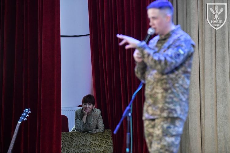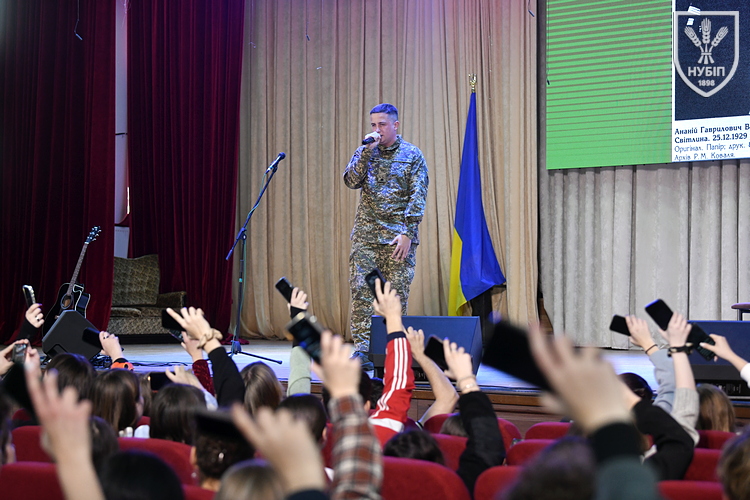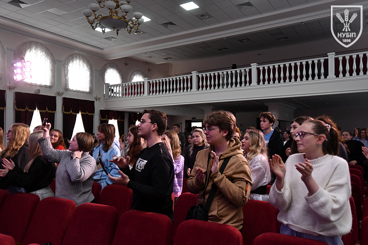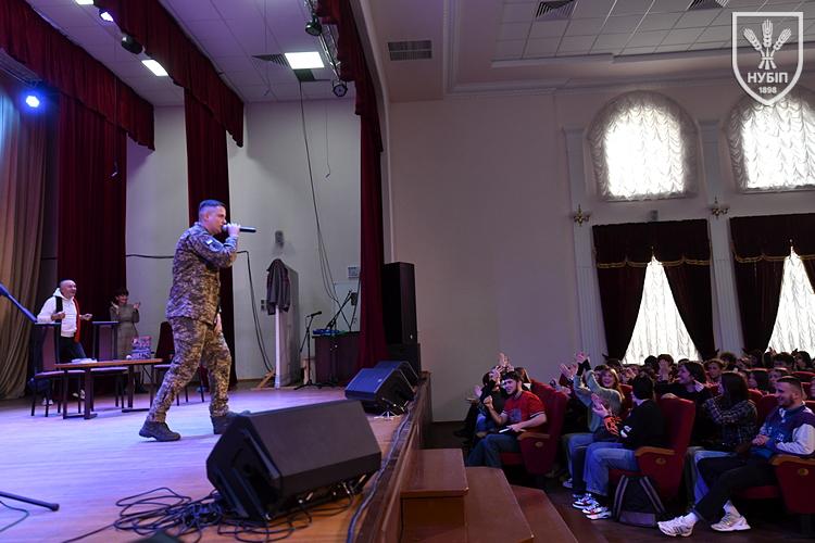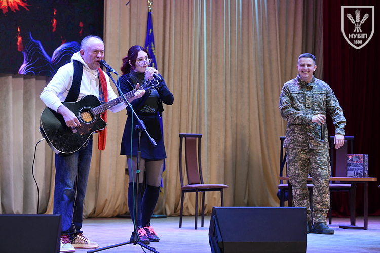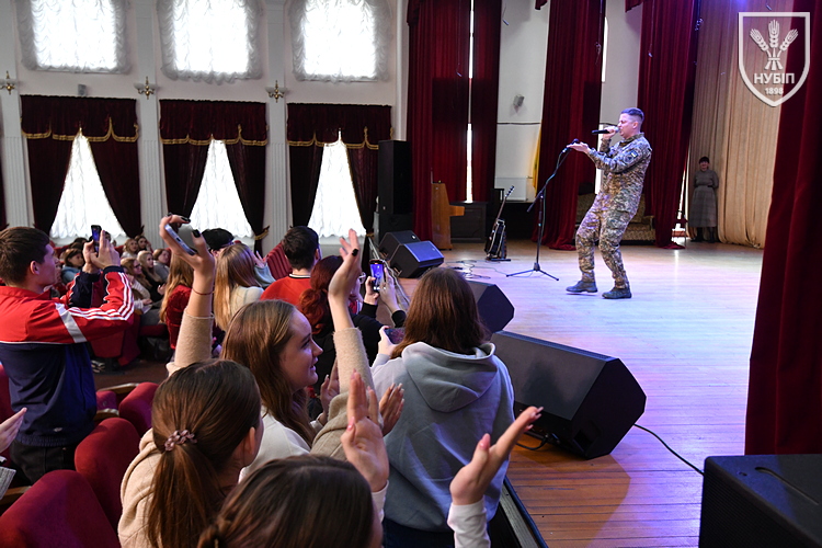 Аура розмови-концерту була неймовірною! У найбільш епогейні моменти цього супершоу Вашому автору доводилося навіть збивати шалену енергетику зали, яка вже переходила у форми «диких танців» і масових братань різних підрозділів нашого ЗВО. А після дуже правильної відповіді Артема на запитання «В якому університеті найкрасивіші студентки» ми разом заспівали славетний романс «Ніч яка, господи, місячна, зоряна» для жіночої когорти НУБіП. Особливо щемно прийняла цей пісенний подарунок легендарна завідувачка катедри культурології Ірина МАЙДАНЮК, яка увесь концерт підтримувала нас за кулісами сцени. Щира подяка їй, а також високофаховому звукооператорові Олександру ТРЕТЯКУ за сприяння у проведенні цього дійства.