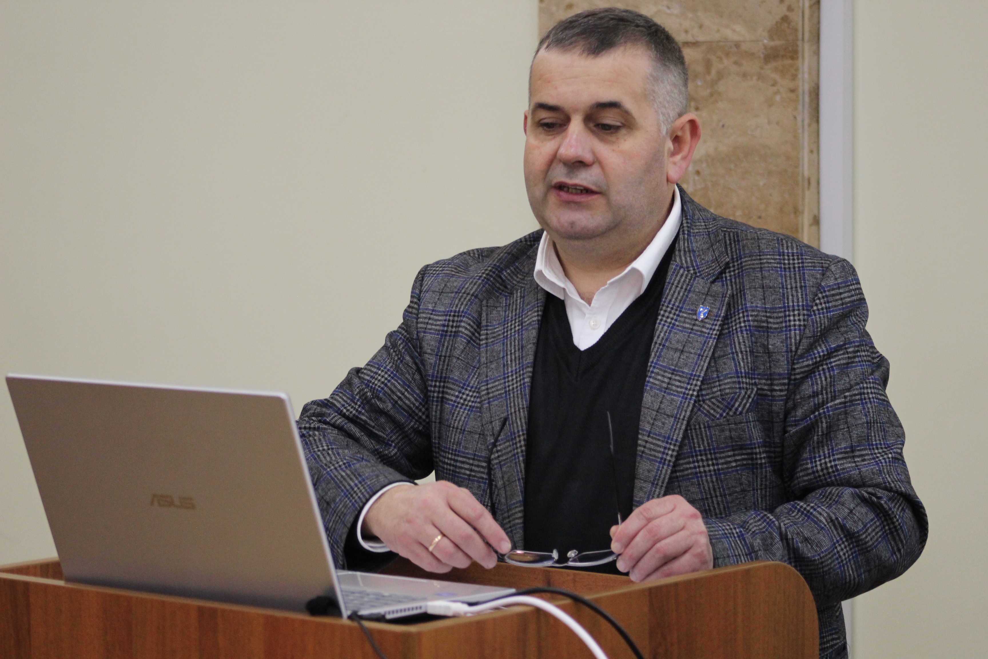 Кафедру ветеринарної репродуктології у короткій, але змістовній презентації представив в.о. завідувача, доцент Сергій ДЕРКАЧ. Він підкреслив високий науковий та практичний потенціал кафедри, яка має багаторічний досвід і унікальні компетенції у сфері контролю відтворення продуктивних і дрібних домашніх тварин. Також він акцентував, що колектив кафедри не лише забезпечує якісну підготовку здобувачів освіти, а й активно впроваджує сучасні біотехнологічні методи у ветеринарну практику, роблячи свій внесок у розвиток галузі та підвищення ефективності тваринництва в Україні.