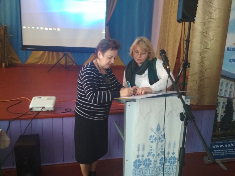 Далі було підписано угоду про сівпрацю та організацію взаємовідносин між НУБіП України та відділом освіти Драбівської районної державної адміністрації в особі начальника відділу освіти Тамари Рудченко.