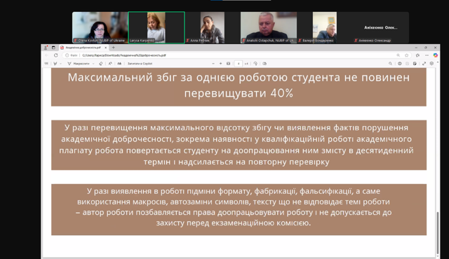 Також заступник декана висвітлила питання перевірки на плагіат бакалаврських кваліфікаційних робіт, як важливого етапу підготовки до захисту. Плагіат є серйозним порушенням академічної доброчесності, щоб уникнути плагіату, студентам рекомендується обов’язково зазначати джерела цитувань, використовувати унікальний аналіз та висновки.
