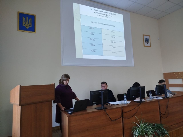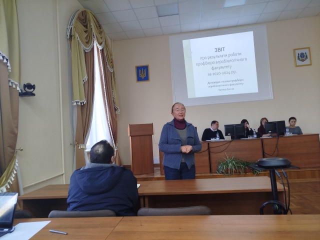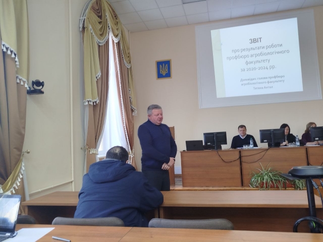 Засідання очолив декан агробіологічного факультету Віталій Коваленко, секретарем було обрано Олену Літвінову, доцента кафедри агрохімії та якості продукції рослинництва ім. О.І. Душечкіна. У своїй доповіді голова профбюро факультету Тетяна Антал, доцент кафедри рослинництва, підсумувала результати роботи за звітний період. Було відзначено, що чисельність профспілкової організації факультету за останні роки коливалася від 174 до 203 осіб, а до складу профбюро входить 13 представників із різних кафедр. Вона розповіла про заходи, спрямовані на оздоровлення працівників факультету, підтримку військовослужбовців із числа співробітників та їхніх сімей, а також надання допомоги від факультету. Особливу увагу було приділено культурно-масовій роботі, вітанням працівників зі святами та підтримці Збройних Сил України.