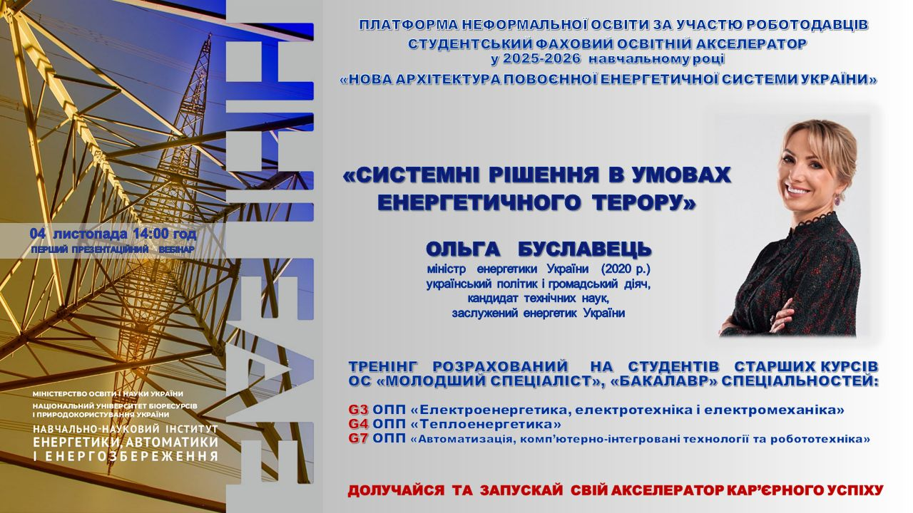 Системні рішення в умовах енергетичного терору. Ольга БУСЛАВЕЦЬ відкрила п’ятий сезон студентського фахового акселератора ННІ енергетики, автоматики і енергозбереження