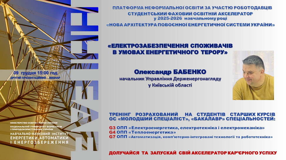 «Електрозабезпечення споживачів в умовах енергетичного терору»: експертна зустріч Олександра Бабенка в межах студентського фахового акселератора ННІ енергетики, автоматики і енергозбереження