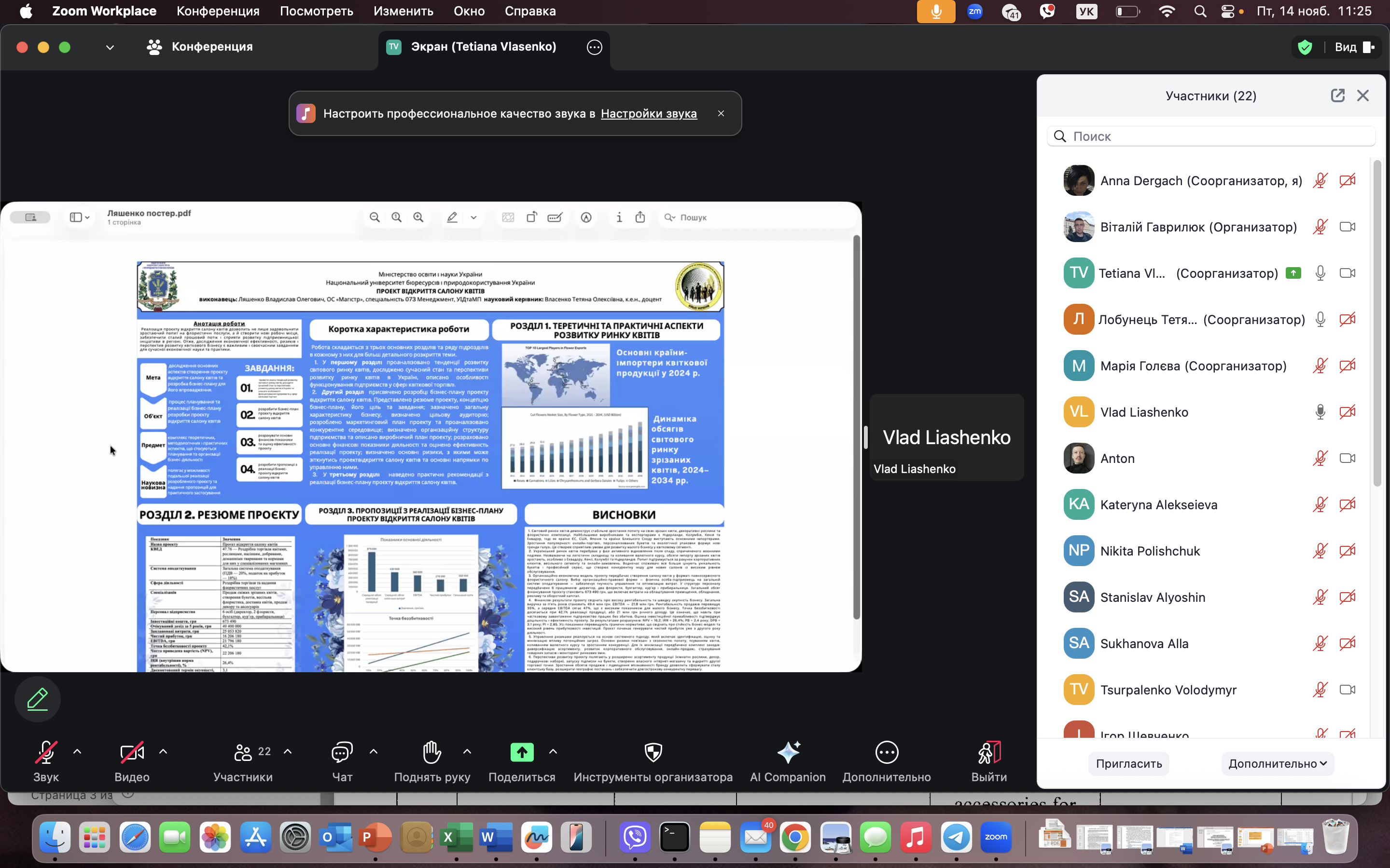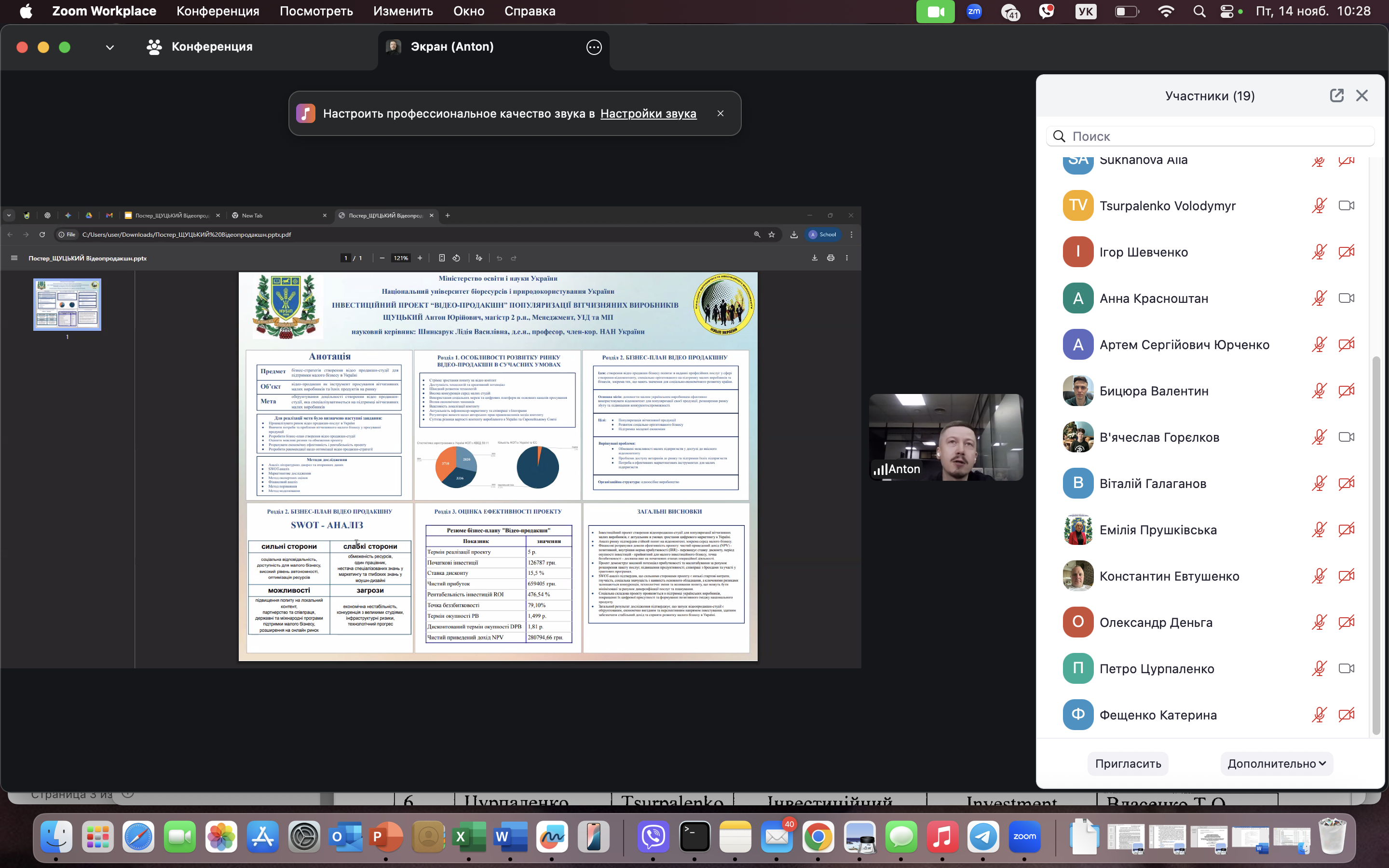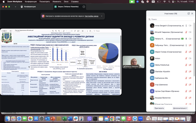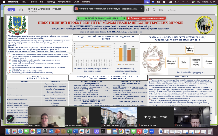 14 листопада 2025 року на кафедрі виробничого та інвестиційного менеджменту відбулась постерна презентація результатів магістерських кваліфікаційних робіт здобувачів другого (магістерського) рівня вищої освіти спеціальності 073 «Менеджмент» освітньої програми «Управління інвестиційною діяльністю та міжнародними проектами.