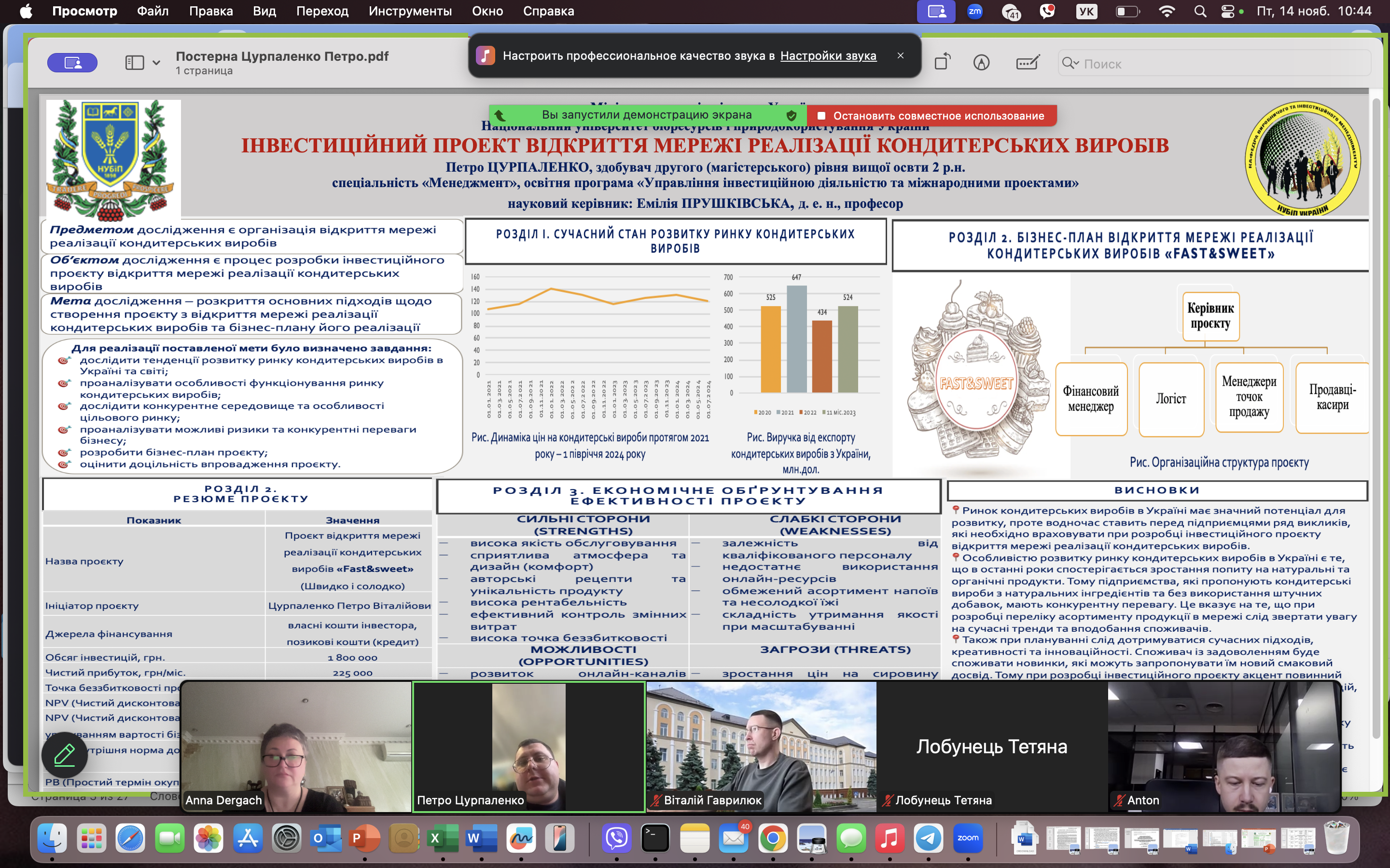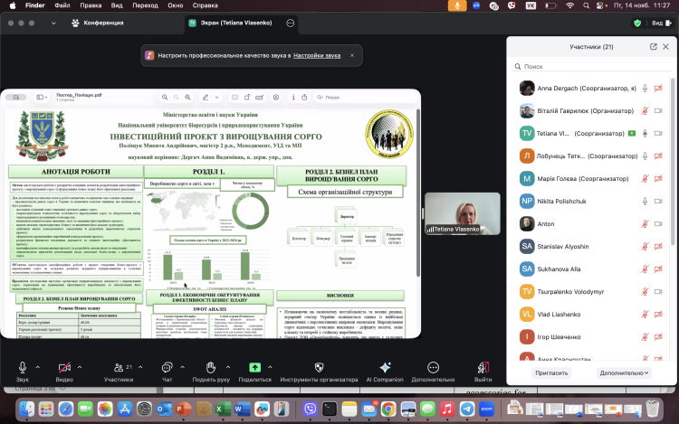 Постерна презентація результатів досліджень магістрів 2-го року навчання на кафедрі виробничого та інвестиційного менеджменту