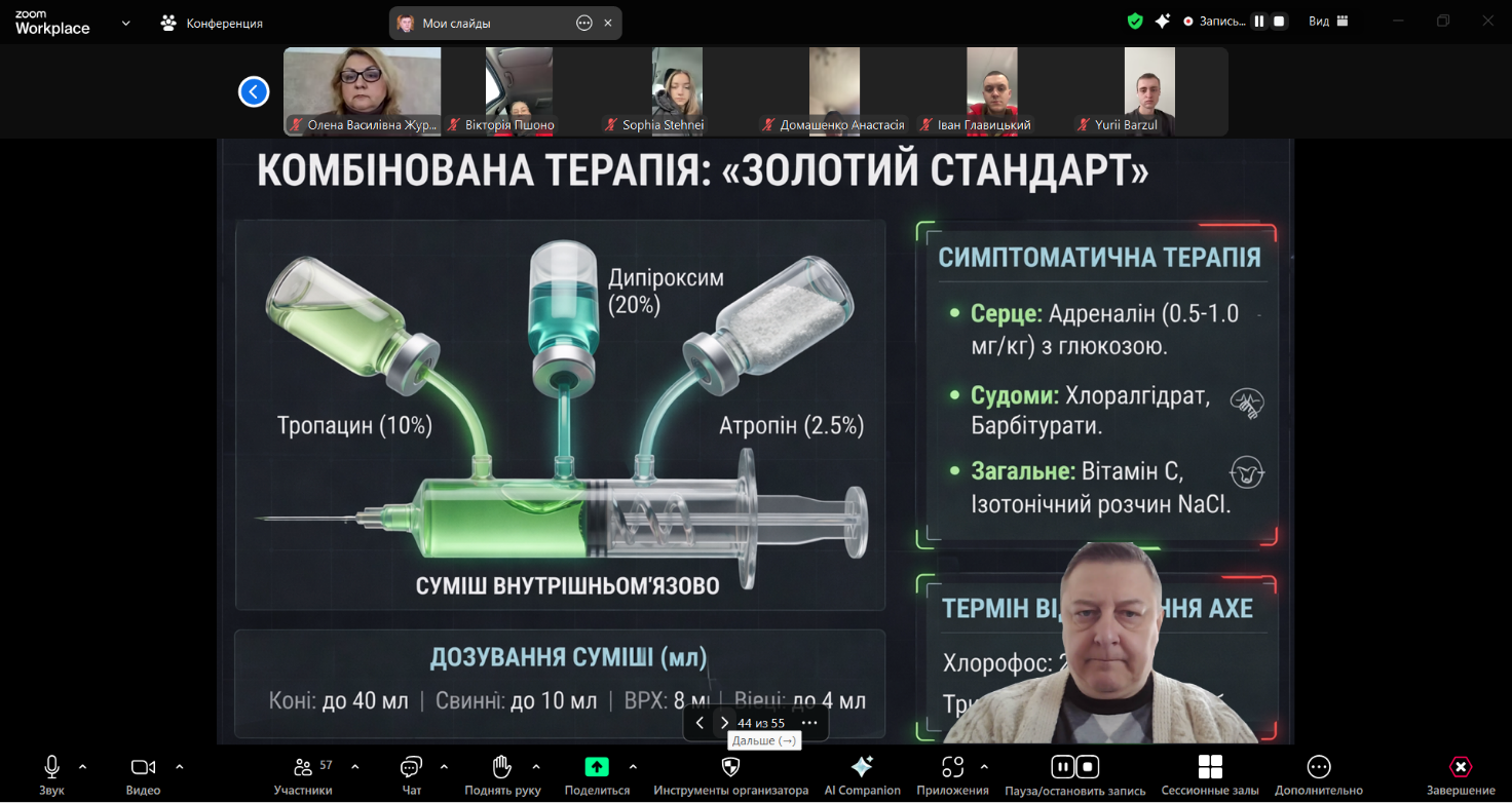 Особливу увагу було приділено розбору клінічних випадків отруєння тварин фосфорорганічними сполуками, що дозволило студентам закріпити теоретичний матеріал і сформувати алгоритм дій лікаря ветеринарної медицини в умовах практичної діяльності.